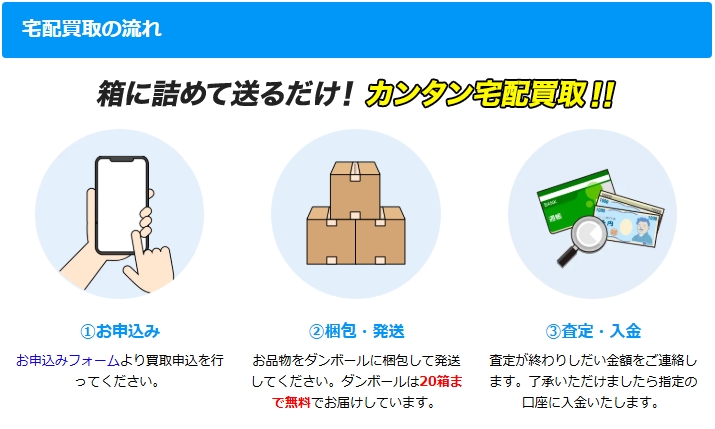 3. 査定・振込:査定結果を受け取り、同意すれば即入金。不満なら返品無料。