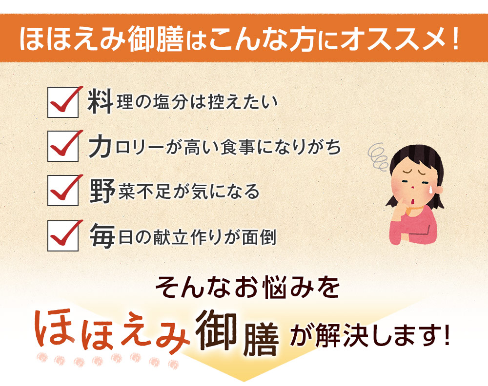 ほほえみ御膳は、忙しい毎日の食事や介護・一人暮らしの食事準備の負担軽減に役立つサービスです。味付けや量の好みは個人差があるため、まずはおためしセットなどで試してみるのがおすすめです。